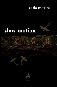 După al doilea volum al trilogiei ”Îngerii din Moscopole” și înainte de a încheia această trilogie, Catia Maxim a publicat, la Editura Tracus Arte, romanul ”Slow Motion”. Trecerea de la epica istorică la întâmplări din zilele noastre s-a dovedit a fi una inspirată. Cel mai nou roman al Catiei Maxim este unul fără rețetă. Adică nu vizează apartenența la vreuna dintre tendințele prozei românești de după 1990 și nici nu se erijează în… trofeu al câștigătorului. Autoarea optează pentru supremația poveștii, cam neglijată de prozatori în ultima vreme (firește cu excepțiile de rigoare) și pe un inedit patrulater al iubirii, în viață și în imaginația unor personaje. Patrulaterul e analizat cinematografic în slow motion, adică într-o mișcare narativă încetinită, cu multe decupaje și planuri fixe, cu ficționalizare zero sau cu ficționalizare accentuată. Bucureștiul cenușiu și tern cu blocurile zonei Gării de Nord e pus față în față cu exotismul Marocului privit nu ca o zonă turistică, în culori tari și obiceiuri desprinse parcă din „O mie și una de nopți”, ci ca o veritabilă călătorie inițiatică (în vis? în realitate?) menită s-o salveze pe Smara. A cărei căsătorie cu Adrian se află în impas după descoperirea relației lui adulterine cu traducătoarea Corina, mama fiului său Daniel bine ascuns… pe facebook. Al patrulea membru al patrulaterului este Jan-Paul, un fel de zburător modern, în rol de salvator al Smarei dar și ca pasionat al zborului cu parapanta.